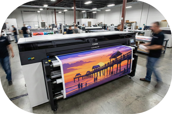 From Spring Break crowds to festivals at Coachman Park, we know Clearwater events run on tight schedules. Our banner production floor features the Canon Colorado M5, a next-generation printer designed for speed. Utilizing breakthrough UVgel technology, this machine prints at blazing speeds while instantly curing the ink. Because the prints emerge completely dry, we can move immediately to finishing, ensuring your event banners are ready faster than the competition.