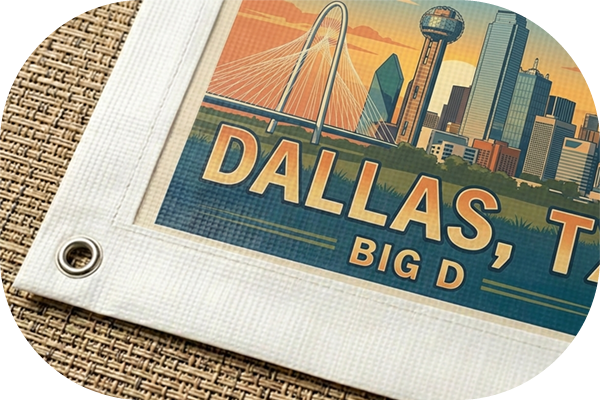 We build every unit for longevity, reinforcing the edges with 1-inch hem tape and installing sturdy metal grommets, delivering a durable, professional custom vinyl banner worthy of the Dallas skyline.