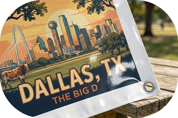 Competition is fierce in Big D, and your business needs Custom Banners Dallas that stand taller than the rest. From the artistic streets of Deep Ellum to the corporate high-rises of Downtown, we provide the high-impact outdoor signage required to capture the market. We utilize advanced vinyl banner printing technology, applying premium resin and UV-cured inks to heavy-duty 13oz vinyl banner material. This industrial-grade combination ensures your large-format graphics resist fading and peeling, even under the relentless North Texas sun.