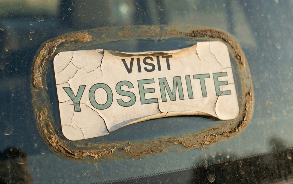 Have you ever seen an old bumper sticker that has a dirty, sticky ring of adhesive around the edge? That is because the vinyl shrank, leaving the glue behind.