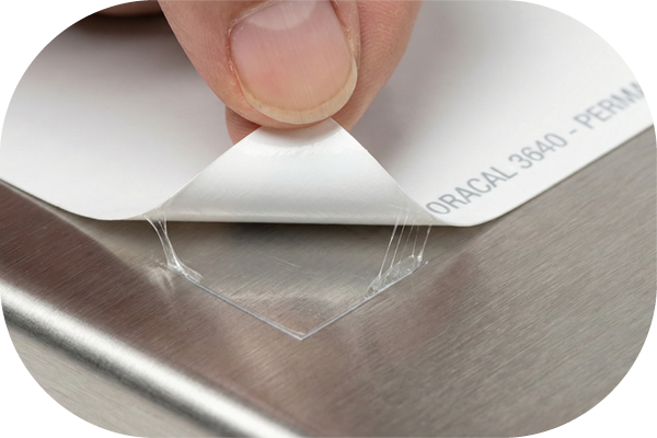 Oracal 3640 has a strong, permanent adhesive that bonds to most clean surfaces. This strong adhesive, with even light pressure, bonds firmly right away. This means you must apply the sticker accurately, as repositioning it can damage or destroy the sticker if repositioning is needed. Do not apply to painted wood or vehicles, as removal will most likely harm the wood’s paint or vehicle’s clearcoat. Painted vehicle metal should only receive low-tack or wrap vinyl. For glossy plastics and powder-coated metal, 3M IJ39 is recommended for its extreme bond.