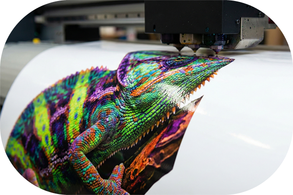 We guarantee a high-definition print. We only print stickers with these brands of printers: Epson, Canon, and Durst. We only use factory O.E.M. (original equipment manufacturer) inks, never an aftermarket, cheap ink. Our minimum print resolution is 300 dpi (300 x 300). We have a specialized Epson printer with 9 ink colors for striking gradients and 4-point text.