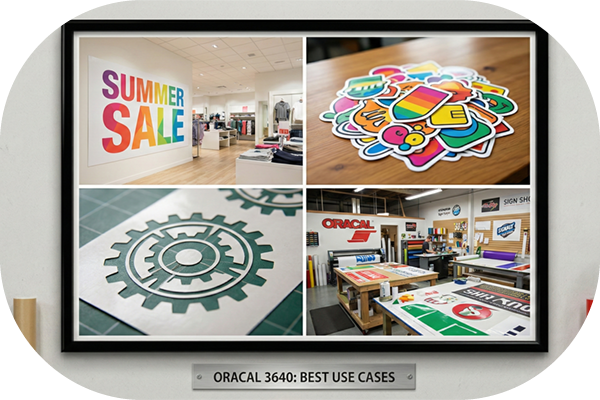 Oracal 3640 is an all-purpose, economy vinyl. Its most common uses are for short- to medium-term flat signage. It is frequently used for giveaway decals, as it’s bright white point gives it the look of a more expensive premium vinyl. Because of its consistent cut quality, shaped decals come out beautifully.