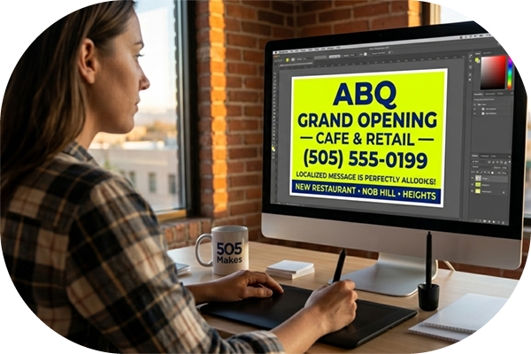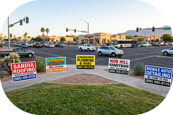In a sprawling city deeply connected by major corridors, a physical presence at key intersections is undeniably powerful. Staking custom yard signs along busy routes or on the manicured lawns of satisfied clients creates a relentless, 24/7 grassroots advertising network. From the Westside across the river to the foothills of the Sandias, our signs provide a highly cost-effective way to multiply your impressions and establish dominant local brand recognition across the entire 505 area code.