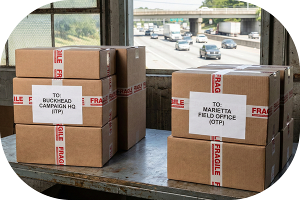 Campaigning inside and outside The Perimeter is a logistical nightmare. Don’t waste precious volunteer hours sitting in gridlock at Spaghetti Junction trying to move inventory. We offer split-shipping capabilities, allowing us to ship part of your order to your Buckhead headquarters and the rest to your Decatur field office simultaneously. We handle the complex freight coordinations so your team can focus on knocking on doors, not fighting traffic on the Downtown Connector.