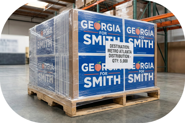 In a battleground state, you can’t afford to run out of ammo. Winning a seat under the Gold Dome requires massive saturation. We are built for the heavy lifting of statewide and metro-wide campaigns. While local shops get overwhelmed by orders over 500, we routinely produce 10,000+ signs with factory-direct pricing. We palletize bulk orders for secure freight delivery, ensuring you have the inventory to blanket every district from Gwinnett to Fulton County without draining your budget.