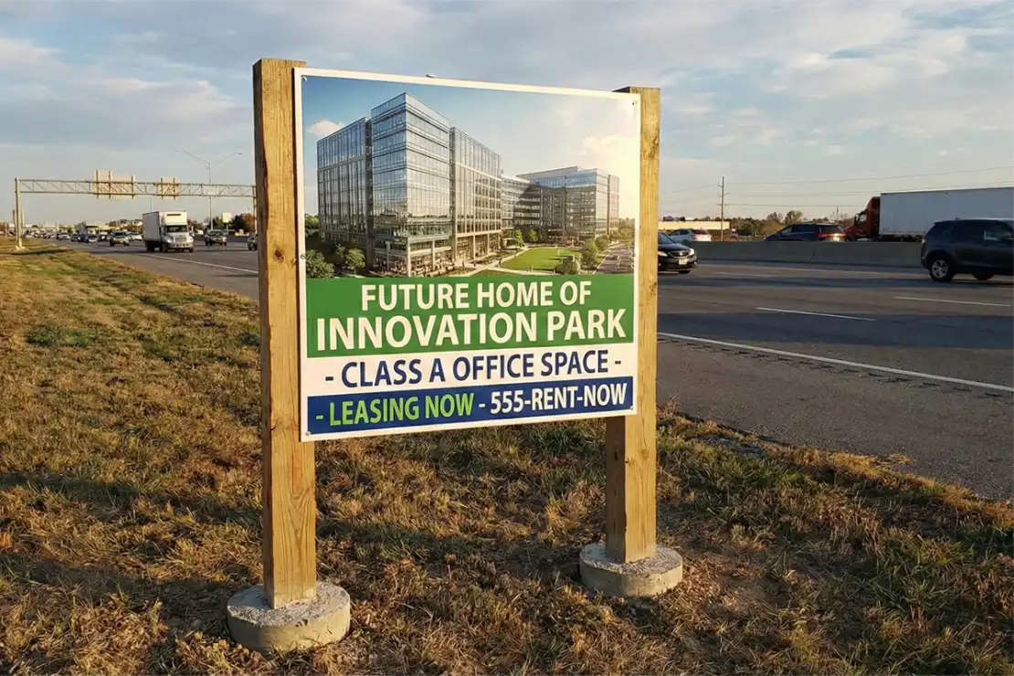 Size equals visibility. A standard yard sign disappears on a busy thoroughfare, but a 48” x 96” highway sign acts as a mini billboard. These large-format displays command attention, making them ideal for high-traffic intersections, rural highways, and construction zones. By placing these giant advertising signs in strategic locations, you generate thousands or impressions daily for a fraction of the cost of traditional billboard rentals.