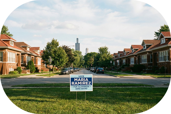 Chicago is a city of distinct neighborhoods, each with its own culture. A winning campaign needs to resonate in all of them. We supply signs that look professional in the brownstones of Lincoln Park, stand out in the busy corridors of Milwaukee Avenue, and survive the elements in Beverly. We help you project a unified, strong image that connects with the diverse voters of the city and suburbs.