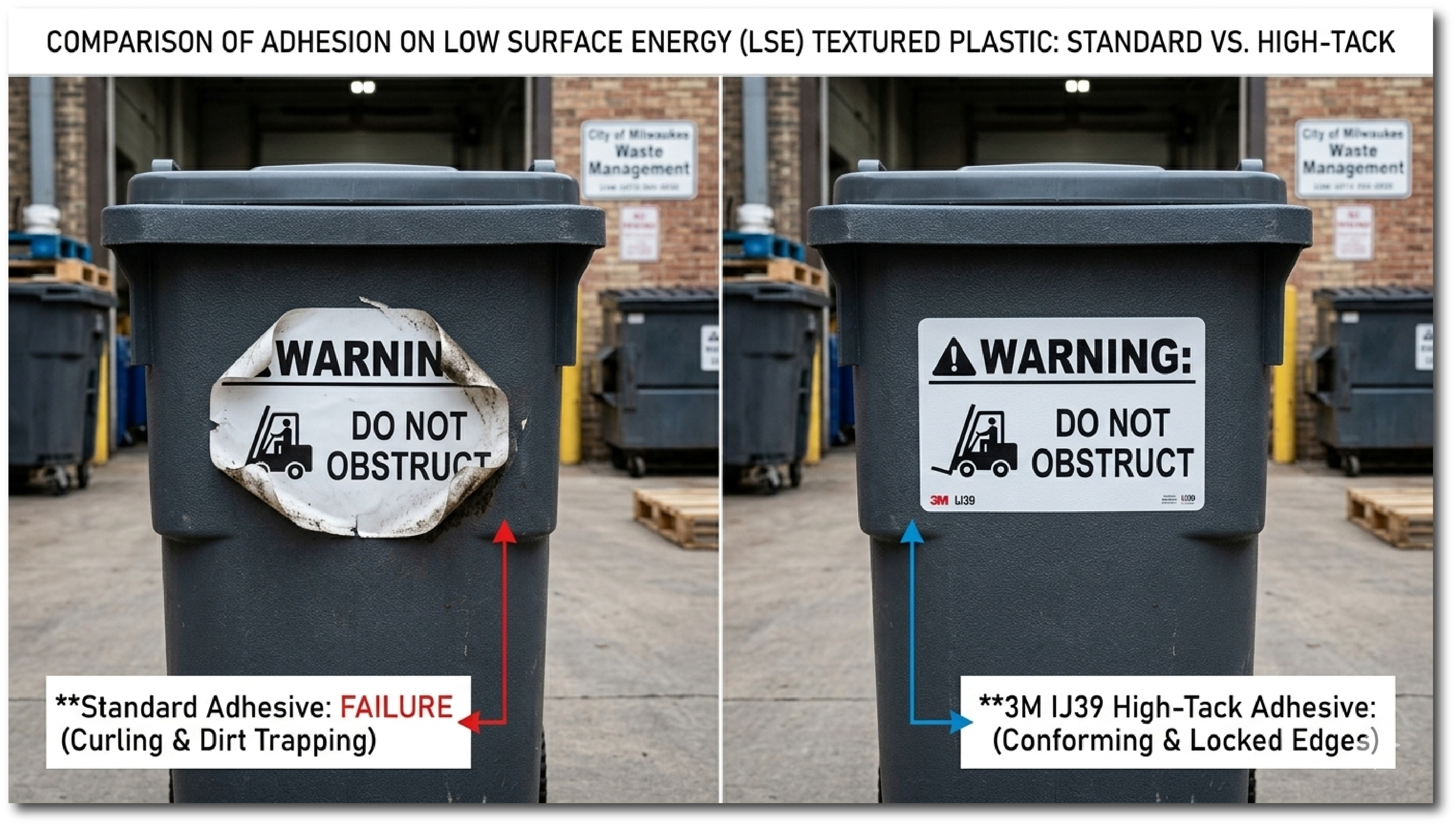 Decals don’t fail on plastic because of poor print quality; they fail because the surface itself resists adhesion. Materials like HDPE and polypropylene are classified as low surface energy (LSE) plastics, meaning standard vinyl adhesives cannot properly bond to them. Since standard vinyl adhesives cannot properly bond to these surfaces, this leads to edge lift, peeling, and premature failure. If you're applying decals to plastic bins, equipment housings, or molded parts, selecting the correct adhesive system is critical.