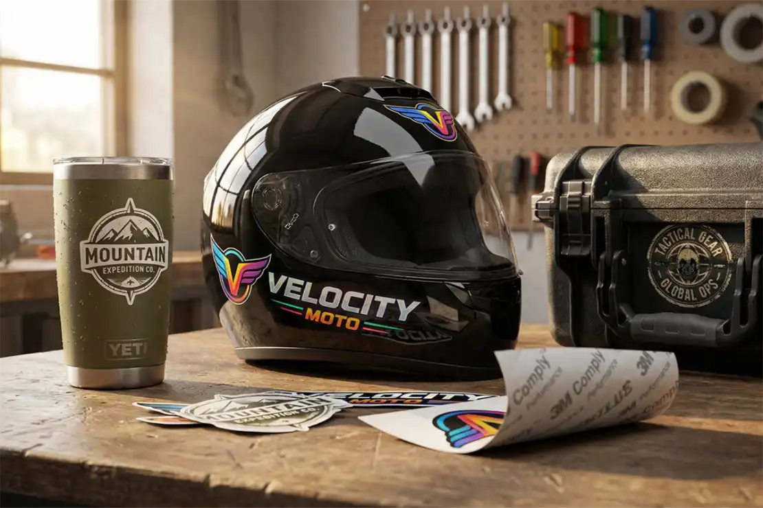 Helmet decals, be they NFL teams or contoured hard hat stickers, are ubiquitous. 3M IJ 180CV3 is the number one seller worldwide for truck decals, plain and boat stickers, and all complex channels and curves. This material is specified when installers request maximum predictability on complex or long-term applications.