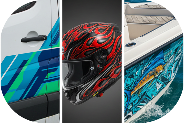 This high-performance film is commonly specified for: - Vehicle wraps and partial wraps. - Helmet decals, including deep channels. - Fleet graphics: car decals, truck decals, boat decals, and plane decals. - Architectural curves and contoured panels. - Equipment graphics requiring long-term durability and often complex shapes. It is typically selected for projects where material failure would be costly, visible, or reputationally damaging. These retain print quality and original size for 5 years plus.
