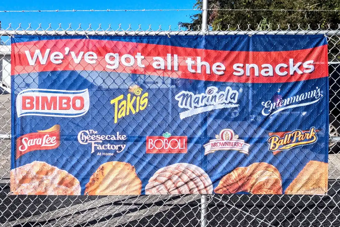 Printed with vibrant dye-sublimation inks, Aero Mesh Banners are fade-resistant and eye-catching. Ours feature a double-needle stitched hem for added durability, with grommets every 2-3 feet for easy installation.