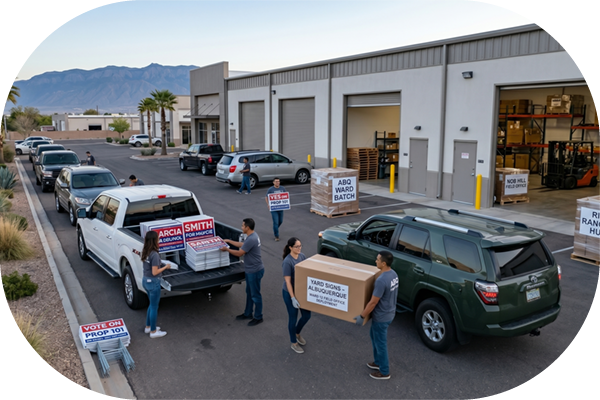 Managing campaign collateral across Albuquerque’s sprawling metro, navigating from Nob Hill to downtown and out to Rio Rancho, requires logistical precision. To keep your grassroots ground game moving, we can coordinate the packaging of your bulk election signs for direct distribution to multiple staging areas and volunteer hubs simultaneously. Our corrugated plastic signs are lightweight, easily stackable, and designed for frictionless assembly with standard metal H-stakes, allowing your street team to quickly load their vehicles and deploy your message across the 505 with maximum efficiency.