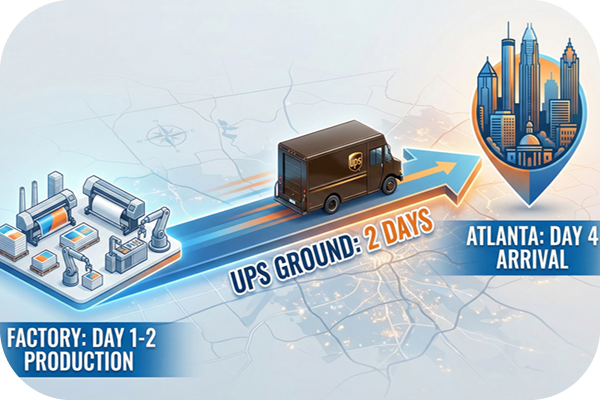 From our press to Peachtree Street. Deadlines don’t wait, and neither do we. We are built for speed without the “rush” fees. We can print thousands of signs a day. And because we are practically neighbors, UPS ground shipping to the Atlanta area takes just 2 days. That means you get high-volume, factory-direct pricing with a turnaround that rivals local shops.