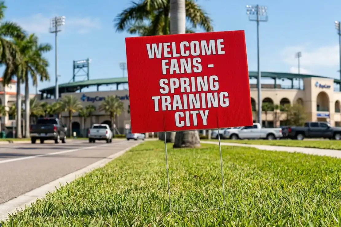 Signs in Clearwater face a unique enemy: salt air. Combined with the intense Florida sun, the coastal environment eats cheap signage for breakfast. We use industrial 4mm Coroplast® that is completely waterproof and unaffected by salt spray. Our UV-cured inks are designed to resist fading even under the relentless glare of the “Sunset Capital,” ensuring your message stays vibrant from the Marina to the mainland.