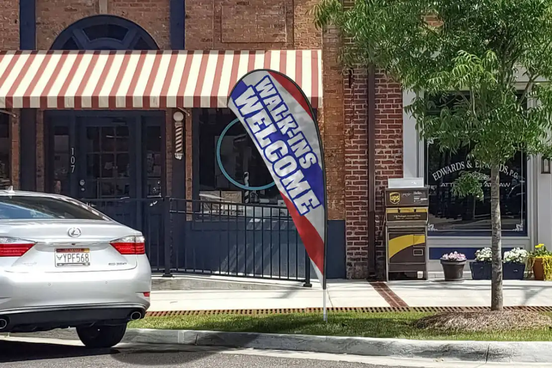 Teardrop Advertising Flags are the perfect way to stand out when promoting a business or launching new products or services. Even with limited wind, their unique movement captures attention much more effectively than static signage. You can accessorize your teardrop flags with poles and either a ground spike or cross base depending on how and where you plan to use it. Additionally, you can add a water bag to the cross base for added stability. Regardless of which accessories you choose, a teardrop flag is an affordable way to draw lots of attention to your brand or event.