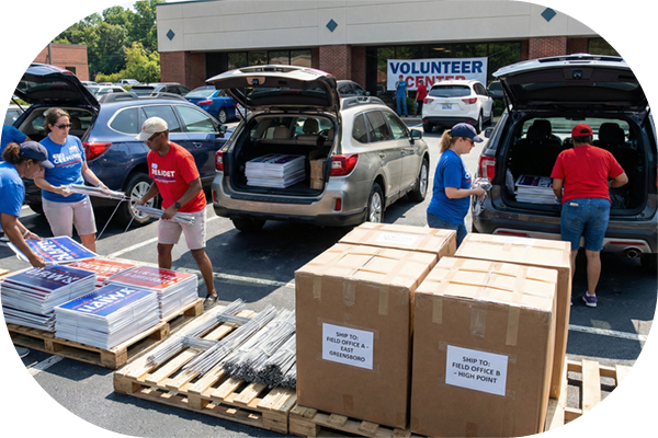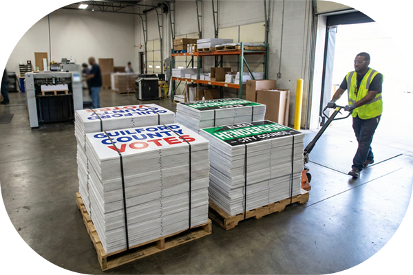 Coordinating a campaign across the Greensboro area requires precision. To eliminate distribution bottlenecks, we can ship your orders of bulk political signs to multiple field offices or volunteer staging areas simultaneously. Once delivered, these lightweight, stackable signs pair instantly with standard metal H-stakes for frictionless assembly. This allows your grassroots volunteers to quickly load up their trunks and deploy your general campaign message across local neighborhoods with maximum efficiency.
