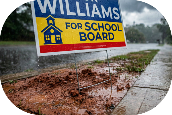 Your campaign advertising must project strength and endure the extremes of North Carolina weather, from blistering summer heat to sudden, severe thunderstorms. We manufacture our durable campaign yard signs using rugged materials and premium UV-resistant inks. This guarantees your yard signs remain bold, legible, and firmly planted on their H-stakes all the way to Election Day.