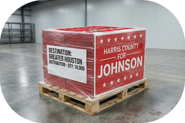 Running a campaign in the fourth-largest city in America requires serious firepower. You can’t win a county-wide seat in Harris County with a handful of signs. We are built for heavy-duty volume, capable of producing 10,000+ signs rapidly with factory-direct pricing. While local shops struggle to keep up with the demand of a mayoral or judicial race, we palletize massive orders for secure freight delivery, ensuring you have the inventory to saturate everything from Kingwood to Clear Lake.
