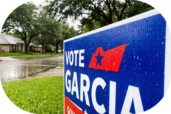 4mm corrugated plastic signs are a durable, weatherproof solution for all your political campaigning needs in Harris, Fort Bend, and Montgomery Counties.