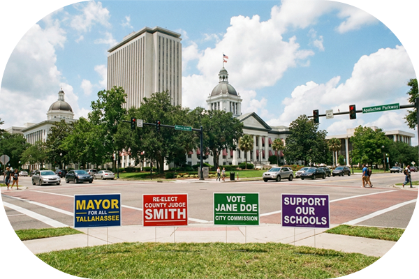 Drive your campaign forward in Florida’s capital with high-visibility, 4mm Coroplast® Tallahassee Political Yard Signs. Built to withstand the intense Panhandle sun and unpredictable storms, these durable political campaign signs maximize your outreach budget and keep your name front-and-center through Election Day.