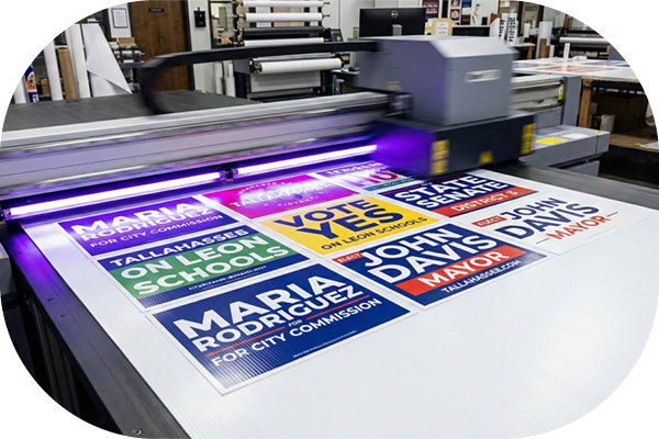 - Digital Printing: The go-to for full-color candidate photos or smaller batches. Your Tallahassee campaign signs are printed with OEM brand Durst UV-cured inks for a premium, glare-free matte finish.