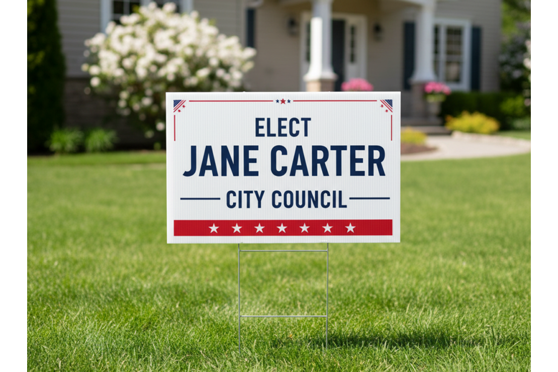 Win votes and increase campaign visibility with custom political yard signs from Good Guys Signs. Our signs are printed on durable 4mm coroplast, a lightweight yet tough outdoor material that keeps your message looking sharp from kickoff through Election Day.