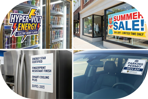 Ideal for temporary promotional displays where easy, residue-free removal is required, making them perfect reusable window decals, temporary product markings, and point-of-purchase displays.