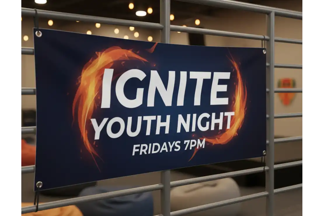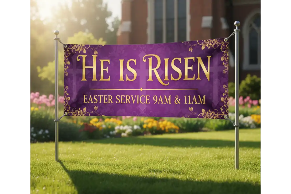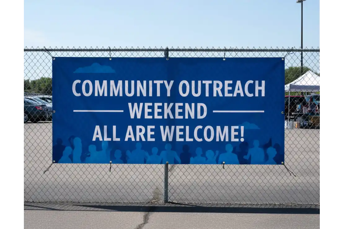 Every banner includes reinforced hems and grommets for easy hanging and long-term durability. The 13 oz. vinyl material is the industry standard for strength, weather resistance, and rich print quality, capable of lasting years outdoors with proper care.