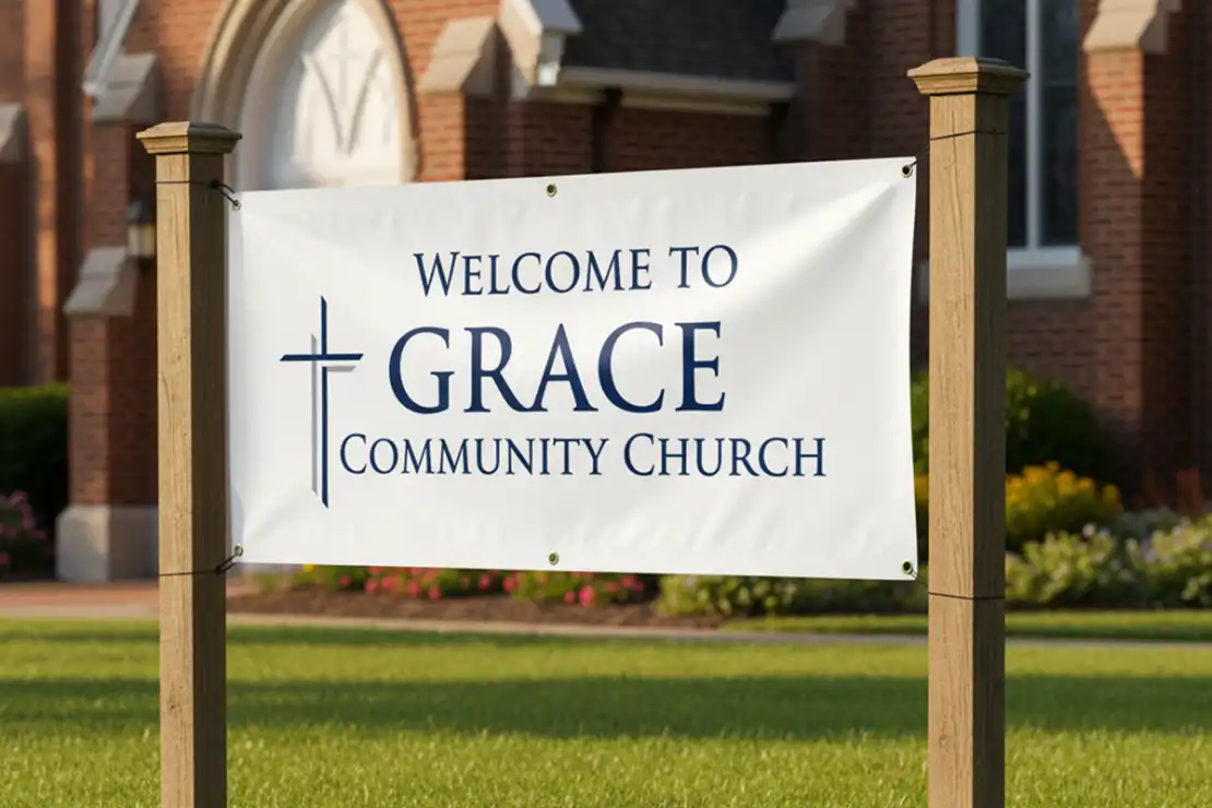 Celebrate your message of faith with custom vinyl church banners from Good Guys Signs. Printed on high-quality 13 oz. solid vinyl, these banners are perfect for both indoor and outdoor display. Ideal for services, events, holidays, and church outreach.