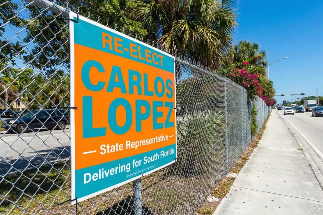 We have supplied political yard signs to winning campaigns across the entire 305. From municipal races in Miami Gardens and North Miami Beach to county commission seats in Homestead, our Miami campaign yard signs are a staple of South Florida elections. We offer aggressive bulk pricing for district-wide saturation, helping you paint the town (and the suburbs) with your campaign colors.