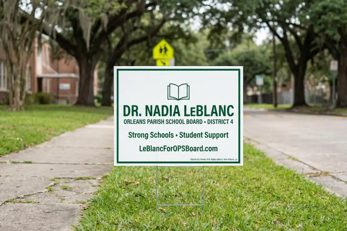 New Orleans might be famous for its relaxed pace, but election season moves fast, especially if you are headed for a runoff. A delay in shipping can leave you empty-handed during the most critical weeks. We prioritize speed. We offer rapid lawn sign production and efficient shipping to the 504 and 985. If a new issue breaks, we can get fresh yard signs into the field while your opponent is still waiting on a delivery.