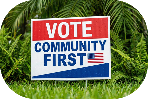 4mm Coroplast® signs are a durable, weatherproof solution for all your political campaigning needs in New Orleans, Metairie, and Kenner.