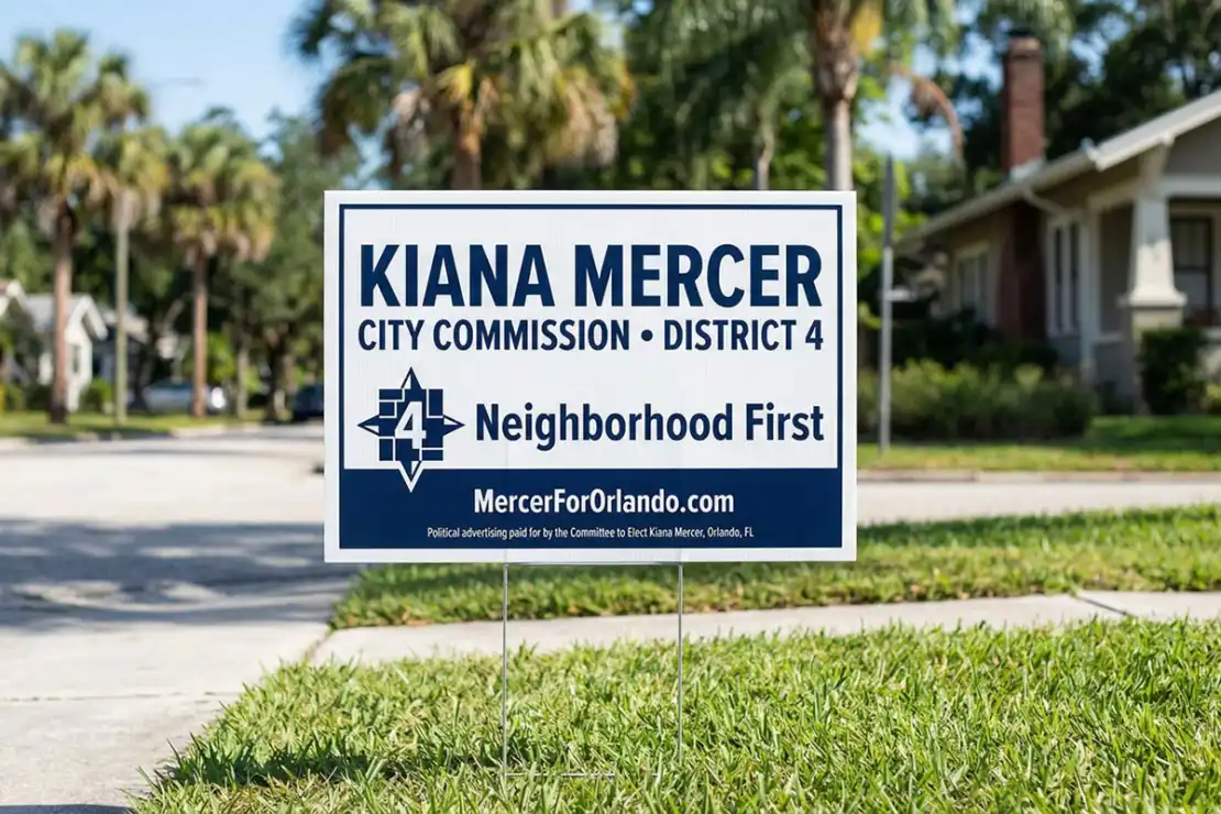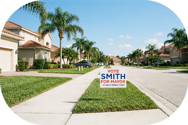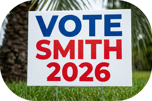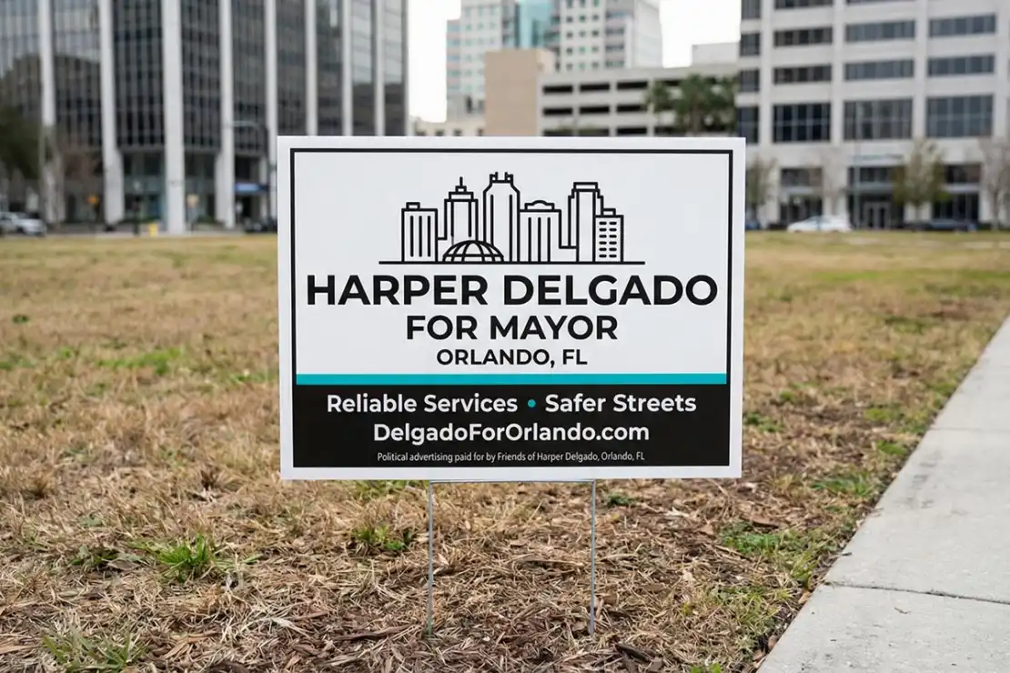 Secure the vote in The City Beautiful with premium Orlando Political Yard Signs. Whether you are campaigning for a City Commission seat in Downtown Orlando, a school board position in Winter Park, or a county-wide office in Orange County, our locally manufactured 4mm Coroplast® signs are built to survive the intense Florida sun and daily afternoon storms. These durable signs ensure your name stays visible and fresh from qualifying week through Election Day.