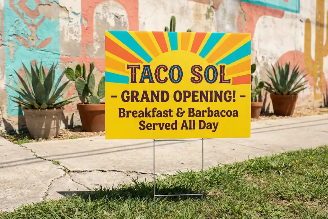 The San Antonio sun is relentless. Between the dry heat and the intense UV index, standard signs fade to white in weeks. We use waterproof 4mm Coroplast® and industrial UV-cured inks specifically tested to withstand the South Texas climate. Whether planted in the rocky soil of the Hill Country or the paved heat of downtown, your sign will stay bright and legible through the longest summer.